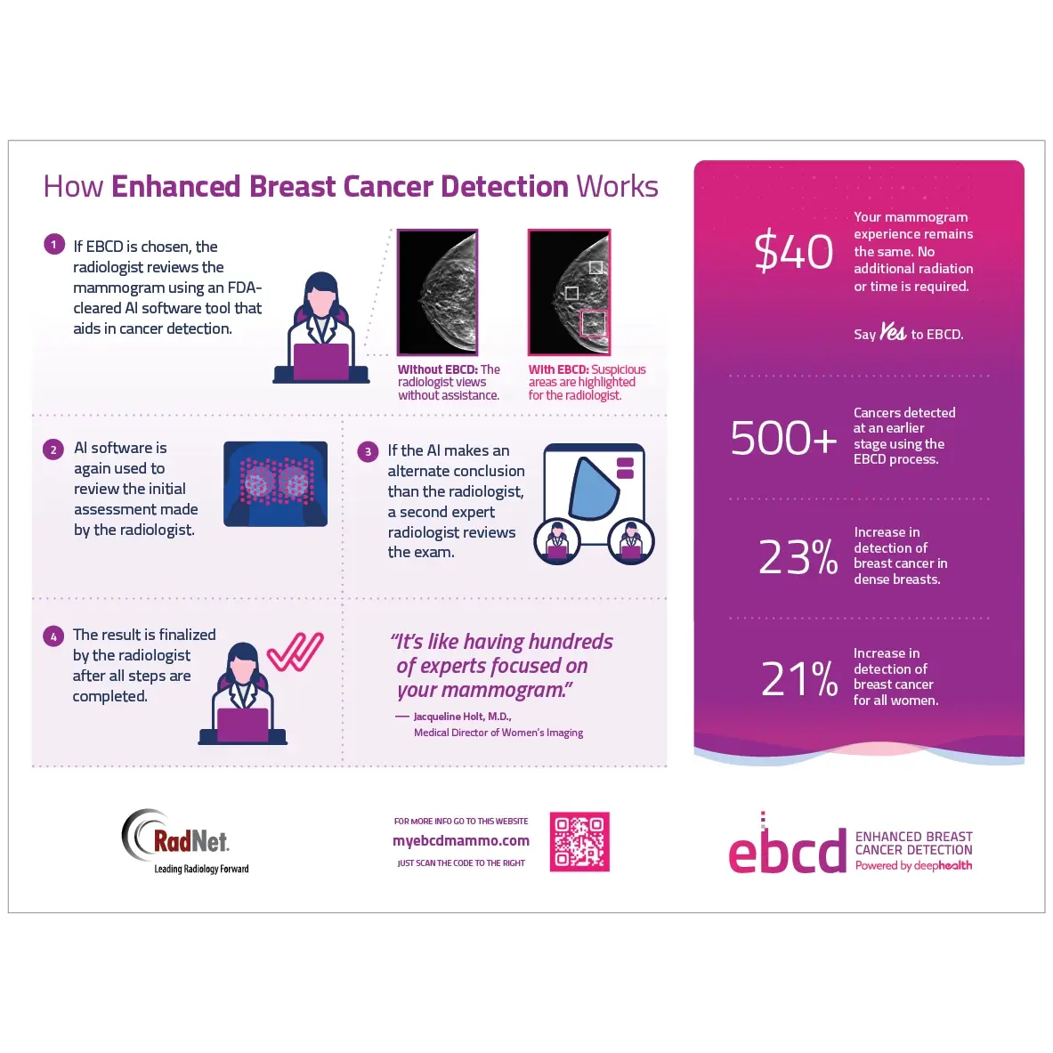Increase in detection of breast cancer in dense breasts.